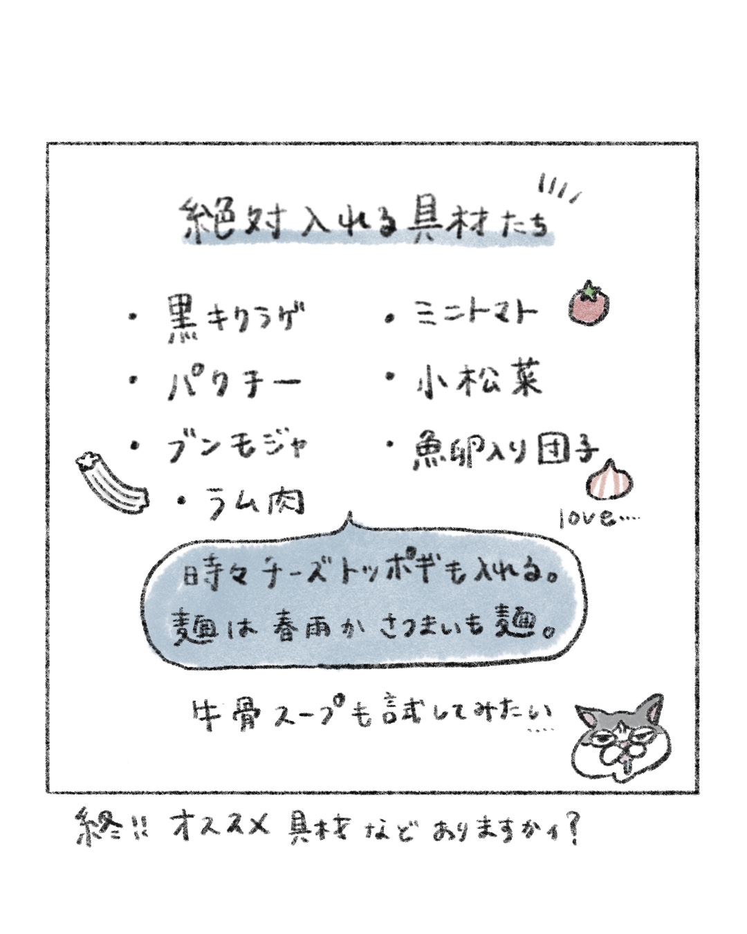 麻辣湯初挑戦🍜 2026.02.03 エッセイ漫画 #イラストエッセイ, #エッセイ 広告 90 コメントはこちら 同じカテゴリの記事 けんか仲裁ずぶ濡れおばけ 伊能忠敬界隈 バレリーナ志望 野良ボス猫のプレゼント 猫のギュイギュイという音 それでも食べる麻辣湯 からだの誇れるところ? 学ぶ、子猫キキ キキへ、本が出たよ 有意義な時間ってなによ まつパで最高の睡眠を..💤 ボス猫のおしっこ(やめて〜) 今ならウルセ〜!といえる キキと祖母 よもぎ蒸し体験③ よもぎ蒸し体験② よもぎ蒸し体験 夜中の猫 酸素は大事というコト!! 野良猫の中のボス猫 ゴキ🪳のトラウマが深すぎる 小麦と私🍝 母にバレたくない猫 猫飼いは猫じゃらしのプロになる 早食いになりたい 銭湯でぶっ倒れた♨️後 顎の猫 猫カフェに癒しを求めて… 麻辣湯カップ麺🍜 隠れる猫 背中にきびの治し方🏥 キキにキレられないやり方 麻辣湯が止まらない👿🍜 猫のおしゃべり🗣️🐈 麻辣湯初挑戦🍜 脇の注射と学ばない女2 脇の注射と学ばない女 母と爪切りと猫 ハイからのキレ 猫は気まぐれ(当たり前に) 髪の毛切りました 隠れる猫 誤解される飼い主(ツラい) 深く眠りたい(切実に) あったかい布、沼 何だその顔 寝ぼける猫 絶対に手は上 野良猫の楽園 脱毛のお姉さん2 脱毛のお姉さん 冬に埋もりがち猫 うさぎはモッモッと鳴きます それでも買ってしまう 理想のまつ毛 は難しい ラッコさんと漫画のネタ 冬の猫、たぬき それでも一緒に寝てみたい 錠剤怖い ご飯によって差が激しい猫 Gもハクビシンもイヤだ 猫まめ知識💡 猫の妖怪 猫又 誤字をキミは見つけられるか トイレする猫 見ちゃう 猫 耳隠し 猫の名前アレンジ 猫の折りたたまれた足 動物の本能 せっかく用意したのに 猫 中年というよりシニア猫 攻撃する猫 コタツの番人(猫) 猫とうさぎ 仲良くね〜 尻尾と出会う猫 暗闇忍者猫🥷 爪切る猫 冬の静電気猫 2 冬の醍醐味 猫 ご飯食べなくなる猫 ガガンボと猫 猫にまばたき 袋を猫と見間違えるのはあるある 落とす猫(あるある) 猫液体の作り方 液体猫 ヤバい奴と猫 年末の猫 風呂場の当たり屋 ショックを受ける猫 執念つよつよ猫 スマホ立てにされる猫 腕を出す 猫 お風呂場に猫 チャチャチャ 猫 抗えない 猫 AIで猫の擬人化を作る 毛布と猫 指しゃぶり猫 猫は気まぐれなのがいい 名前分かってる猫 冬の水セレブ猫 猫のご飯 結果 お弁当変化猫 先輩風吹かせ猫 寝ぼけている時寛容猫 カメムシと猫 目で叱ってくる猫 みんな好きだよね、猫の口 猫の毛を付けてゆくのだ 猫の毛玉ボール 冬と夏の猫 鬼ごっこの流れ 猫 (私的)猫の可愛い瞬間 水セレブ猫 猫のコメント欄 膝に乗るうさぎ 猫 よくくる質問 猫 いつもムスッとしてる猫 ふとした形の猫 あくび指猫 ファンサえぐい猫 シャーのニオイ猫 猫飼い主の発作 霊感があるのか猫 お尻トントン猫 猫缶は薄味のツナ缶 ニョー言わない猫 グルメな猫へ レーザーポインターはやめてね猫 お迎え初日の猫(かゆい)③ お迎え初日の猫(かゆい)② お迎え初日の猫(かゆい) 子猫でも変わらない猫 罠をかける猫 ごまかし猫 結局ウットリ猫 猫の皮膚の弛み 成長の猫 何がなんでも入る猫 臭いパトロール猫 不憫な姉と猫 部位別の反応、猫 猫 ブチギレ写真 猫の寿命 猫、オスメスの見分け方 優しくなった猫 母と猫 アンタのせいだよ、猫 ビックリしちゃう猫 しっぽ叩き猫 目を合わせない猫 遊び猫 逆ギレ猫 ほんとにサヨナラ、モフモフ 去勢猫 グッバイモフモフ 去勢猫 モフモフ 肉球猫 客人と猫 ダミ声猫 ご飯催促猫 こういうラッキーもある G嫌すぎ 猫用ケーキ🍰 パーソナルカラーと猫 筋肉質猫 🍣🍜りくさんの猫 吐く猫 おえおえ 猫とセミ 返事しすぎ猫 姉と猫(不憫) ダンボール好き猫 ウンチハイ猫 老いていく猫 夜中の猫 マタタビ猫 猫のゴロゴロ 慰め猫(あたたか) キキの心情 キキという名前 厚底サンダルマダム 猫ニキビ 激アツ美容院 猫あるある やらない 猫吸いチャレンジ 牛乳か雲丹か 街中膝カックン 話しかけるのもダメ パクパク女 水へのこだわり💦 飼い主のことを忘れた猫 お漏らし癖⑦終 お漏らし癖⑥ お漏らし癖⑤ お漏らし癖④ お漏らし癖③ お漏らし癖② お漏らし癖① 小学生彼女オーディション終 小学生彼女オーディション⑥ 小学生彼女オーディション⑤ 小学生彼女オーディション④ 小学生彼女オーディション③ 小学生彼女オーディション② 小学生彼女オーディション① 男子と喧嘩(終) 男子と喧嘩11 男子と喧嘩⑩ 男子と喧嘩⑨ 男子と喧嘩⑧ 男子と喧嘩⑦ 男子と喧嘩⑥ 男子と喧嘩⑤ 男子と喧嘩④ 男子と喧嘩③ 男子と喧嘩② 男子と喧嘩① 短いスカート履かせてあげたいョ‼️ 高校生の靴下の長さは…?🧦 初投稿 おしりぷりぷりブログかましたる 前の記事 脇の注射と学ばない女2 2026.02.02 次の記事 猫のおしゃべり🗣️🐈 2026.02.04 アプリなら通知ですぐ読める! NAPBIZブログ This site is protected by reCAPTCHA and the Google Privacy Policy and Terms of Service apply.