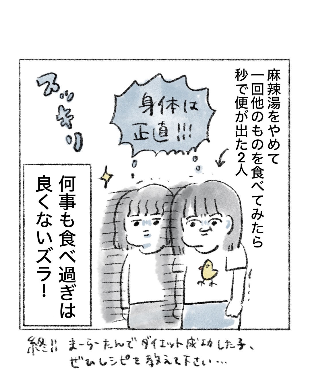 麻辣湯は体に良いと思ってた(思い込んでた) 2026.03.19 エッセイ漫画 #イラストエッセイ, #エッセイマンガ 広告 81 コメントはこちら 同じカテゴリの記事 歯科とクチビル もう春ですよ〜ッ よくネット上で話題になる会話🍤 通い続けたい歯医者さん 今になって誤解を解きたい 富士山のプレゼント ねこ巻き🌀うまりたい 帰省したときのキキ キキの瞳は月 先輩のクッキー(レシピはインスタに載せます!) おしゃべりおじさん2 おしゃべりおじさん 落ちている猫? 軍曹襲来②虫が出ます 軍曹襲来⚠️虫注意 ボス野良猫再び 麻辣湯は体に良いと思ってた(思い込んでた) 我に返る猫 キキのファンサ お散歩事件 ふしぎ猫 お散歩事件 けんか仲裁ずぶ濡れおばけ 伊能忠敬界隈 バレリーナ志望 野良ボス猫のプレゼント 猫のギュイギュイという音 それでも食べる麻辣湯 からだの誇れるところ? 学ぶ、子猫キキ キキへ、本が出たよ 有意義な時間ってなによ まつパで最高の睡眠を..💤 ボス猫のおしっこ(やめて〜) 今ならウルセ〜!といえる キキと祖母 よもぎ蒸し体験③ よもぎ蒸し体験② よもぎ蒸し体験 夜中の猫 酸素は大事というコト!! 野良猫の中のボス猫 ゴキ🪳のトラウマが深すぎる 小麦と私🍝 母にバレたくない猫 猫飼いは猫じゃらしのプロになる 早食いになりたい 銭湯でぶっ倒れた♨️後 顎の猫 猫カフェに癒しを求めて… 麻辣湯カップ麺🍜 隠れる猫 背中にきびの治し方🏥 キキにキレられないやり方 麻辣湯が止まらない👿🍜 猫のおしゃべり🗣️🐈 麻辣湯初挑戦🍜 脇の注射と学ばない女2 脇の注射と学ばない女 母と爪切りと猫 ハイからのキレ 猫は気まぐれ(当たり前に) 髪の毛切りました 隠れる猫 誤解される飼い主(ツラい) 深く眠りたい(切実に) あったかい布、沼 何だその顔 寝ぼける猫 絶対に手は上 野良猫の楽園 脱毛のお姉さん2 脱毛のお姉さん 冬に埋もりがち猫 うさぎはモッモッと鳴きます それでも買ってしまう 理想のまつ毛 は難しい ラッコさんと漫画のネタ 冬の猫、たぬき それでも一緒に寝てみたい 錠剤怖い ご飯によって差が激しい猫 Gもハクビシンもイヤだ 猫まめ知識💡 猫の妖怪 猫又 誤字をキミは見つけられるか トイレする猫 見ちゃう 猫 耳隠し 猫の名前アレンジ 猫の折りたたまれた足 動物の本能 せっかく用意したのに 猫 中年というよりシニア猫 攻撃する猫 コタツの番人(猫) 猫とうさぎ 仲良くね〜 尻尾と出会う猫 暗闇忍者猫🥷 爪切る猫 冬の静電気猫 2 冬の醍醐味 猫 ご飯食べなくなる猫 ガガンボと猫 猫にまばたき 袋を猫と見間違えるのはあるある 落とす猫(あるある) 猫液体の作り方 液体猫 ヤバい奴と猫 年末の猫 風呂場の当たり屋 ショックを受ける猫 執念つよつよ猫 スマホ立てにされる猫 腕を出す 猫 お風呂場に猫 チャチャチャ 猫 抗えない 猫 AIで猫の擬人化を作る 毛布と猫 指しゃぶり猫 猫は気まぐれなのがいい 名前分かってる猫 冬の水セレブ猫 猫のご飯 結果 お弁当変化猫 先輩風吹かせ猫 寝ぼけている時寛容猫 カメムシと猫 目で叱ってくる猫 みんな好きだよね、猫の口 猫の毛を付けてゆくのだ 猫の毛玉ボール 冬と夏の猫 鬼ごっこの流れ 猫 (私的)猫の可愛い瞬間 水セレブ猫 猫のコメント欄 膝に乗るうさぎ 猫 よくくる質問 猫 いつもムスッとしてる猫 ふとした形の猫 あくび指猫 ファンサえぐい猫 シャーのニオイ猫 猫飼い主の発作 霊感があるのか猫 お尻トントン猫 猫缶は薄味のツナ缶 ニョー言わない猫 グルメな猫へ レーザーポインターはやめてね猫 お迎え初日の猫(かゆい)③ お迎え初日の猫(かゆい)② お迎え初日の猫(かゆい) 子猫でも変わらない猫 罠をかける猫 ごまかし猫 結局ウットリ猫 猫の皮膚の弛み 成長の猫 何がなんでも入る猫 臭いパトロール猫 不憫な姉と猫 部位別の反応、猫 猫 ブチギレ写真 猫の寿命 猫、オスメスの見分け方 優しくなった猫 母と猫 アンタのせいだよ、猫 ビックリしちゃう猫 しっぽ叩き猫 目を合わせない猫 遊び猫 逆ギレ猫 ほんとにサヨナラ、モフモフ 去勢猫 グッバイモフモフ 去勢猫 モフモフ 肉球猫 客人と猫 ダミ声猫 ご飯催促猫 こういうラッキーもある G嫌すぎ 猫用ケーキ🍰 パーソナルカラーと猫 筋肉質猫 🍣🍜りくさんの猫 吐く猫 おえおえ 猫とセミ 返事しすぎ猫 姉と猫(不憫) ダンボール好き猫 ウンチハイ猫 老いていく猫 夜中の猫 マタタビ猫 猫のゴロゴロ 慰め猫(あたたか) キキの心情 キキという名前 厚底サンダルマダム 猫ニキビ 激アツ美容院 猫あるある やらない 猫吸いチャレンジ 牛乳か雲丹か 街中膝カックン 話しかけるのもダメ パクパク女 水へのこだわり💦 飼い主のことを忘れた猫 お漏らし癖⑦終 お漏らし癖⑥ お漏らし癖⑤ お漏らし癖④ お漏らし癖③ お漏らし癖② お漏らし癖① 小学生彼女オーディション終 小学生彼女オーディション⑥ 小学生彼女オーディション⑤ 小学生彼女オーディション④ 小学生彼女オーディション③ 小学生彼女オーディション② 小学生彼女オーディション① 男子と喧嘩(終) 男子と喧嘩11 男