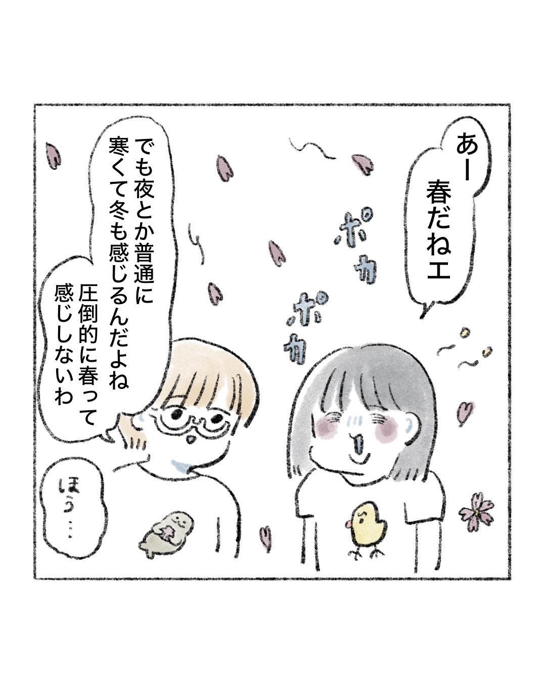 もう春ですよ〜ッ 2026.04.03 エッセイ漫画 #ねこ, #イラストエッセイ, #エッセイ, #エッセイマンガ 広告 55 コメントはこちら 同じカテゴリの記事 もう春ですよ〜ッ よくネット上で話題になる会話🍤 通い続けたい歯医者さん 今になって誤解を解きたい 富士山のプレゼント ねこ巻き🌀うまりたい 帰省したときのキキ キキの瞳は月 先輩のクッキー(レシピはインスタに載せます!) おしゃべりおじさん2 おしゃべりおじさん 落ちている猫? 軍曹襲来②虫が出ます 軍曹襲来⚠️虫注意 ボス野良猫再び 麻辣湯は体に良いと思ってた(思い込んでた) 我に返る猫 キキのファンサ お散歩事件 ふしぎ猫 お散歩事件 けんか仲裁ずぶ濡れおばけ 伊能忠敬界隈 バレリーナ志望 野良ボス猫のプレゼント 猫のギュイギュイという音 それでも食べる麻辣湯 からだの誇れるところ? 学ぶ、子猫キキ キキへ、本が出たよ 有意義な時間ってなによ まつパで最高の睡眠を..💤 ボス猫のおしっこ(やめて〜) 今ならウルセ〜!といえる キキと祖母 よもぎ蒸し体験③ よもぎ蒸し体験② よもぎ蒸し体験 夜中の猫 酸素は大事というコト!! 野良猫の中のボス猫 ゴキ🪳のトラウマが深すぎる 小麦と私🍝 母にバレたくない猫 猫飼いは猫じゃらしのプロになる 早食いになりたい 銭湯でぶっ倒れた♨️後 顎の猫 猫カフェに癒しを求めて… 麻辣湯カップ麺🍜 隠れる猫 背中にきびの治し方🏥 キキにキレられないやり方 麻辣湯が止まらない👿🍜 猫のおしゃべり🗣️🐈 麻辣湯初挑戦🍜 脇の注射と学ばない女2 脇の注射と学ばない女 母と爪切りと猫 ハイからのキレ 猫は気まぐれ(当たり前に) 髪の毛切りました 隠れる猫 誤解される飼い主(ツラい) 深く眠りたい(切実に) あったかい布、沼 何だその顔 寝ぼける猫 絶対に手は上 野良猫の楽園 脱毛のお姉さん2 脱毛のお姉さん 冬に埋もりがち猫 うさぎはモッモッと鳴きます それでも買ってしまう 理想のまつ毛 は難しい ラッコさんと漫画のネタ 冬の猫、たぬき それでも一緒に寝てみたい 錠剤怖い ご飯によって差が激しい猫 Gもハクビシンもイヤだ 猫まめ知識💡 猫の妖怪 猫又 誤字をキミは見つけられるか トイレする猫 見ちゃう 猫 耳隠し 猫の名前アレンジ 猫の折りたたまれた足 動物の本能 せっかく用意したのに 猫 中年というよりシニア猫 攻撃する猫 コタツの番人(猫) 猫とうさぎ 仲良くね〜 尻尾と出会う猫 暗闇忍者猫🥷 爪切る猫 冬の静電気猫 2 冬の醍醐味 猫 ご飯食べなくなる猫 ガガンボと猫 猫にまばたき 袋を猫と見間違えるのはあるある 落とす猫(あるある) 猫液体の作り方 液体猫 ヤバい奴と猫 年末の猫 風呂場の当たり屋 ショックを受ける猫 執念つよつよ猫 スマホ立てにされる猫 腕を出す 猫 お風呂場に猫 チャチャチャ 猫 抗えない 猫 AIで猫の擬人化を作る 毛布と猫 指しゃぶり猫 猫は気まぐれなのがいい 名前分かってる猫 冬の水セレブ猫 猫のご飯 結果 お弁当変化猫 先輩風吹かせ猫 寝ぼけている時寛容猫 カメムシと猫 目で叱ってくる猫 みんな好きだよね、猫の口 猫の毛を付けてゆくのだ 猫の毛玉ボール 冬と夏の猫 鬼ごっこの流れ 猫 (私的)猫の可愛い瞬間 水セレブ猫 猫のコメント欄 膝に乗るうさぎ 猫 よくくる質問 猫 いつもムスッとしてる猫 ふとした形の猫 あくび指猫 ファンサえぐい猫 シャーのニオイ猫 猫飼い主の発作 霊感があるのか猫 お尻トントン猫 猫缶は薄味のツナ缶 ニョー言わない猫 グルメな猫へ レーザーポインターはやめてね猫 お迎え初日の猫(かゆい)③ お迎え初日の猫(かゆい)② お迎え初日の猫(かゆい) 子猫でも変わらない猫 罠をかける猫 ごまかし猫 結局ウットリ猫 猫の皮膚の弛み 成長の猫 何がなんでも入る猫 臭いパトロール猫 不憫な姉と猫 部位別の反応、猫 猫 ブチギレ写真 猫の寿命 猫、オスメスの見分け方 優しくなった猫 母と猫 アンタのせいだよ、猫 ビックリしちゃう猫 しっぽ叩き猫 目を合わせない猫 遊び猫 逆ギレ猫 ほんとにサヨナラ、モフモフ 去勢猫 グッバイモフモフ 去勢猫 モフモフ 肉球猫 客人と猫 ダミ声猫 ご飯催促猫 こういうラッキーもある G嫌すぎ 猫用ケーキ🍰 パーソナルカラーと猫 筋肉質猫 🍣🍜りくさんの猫 吐く猫 おえおえ 猫とセミ 返事しすぎ猫 姉と猫(不憫) ダンボール好き猫 ウンチハイ猫 老いていく猫 夜中の猫 マタタビ猫 猫のゴロゴロ 慰め猫(あたたか) キキの心情 キキという名前 厚底サンダルマダム 猫ニキビ 激アツ美容院 猫あるある やらない 猫吸いチャレンジ 牛乳か雲丹か 街中膝カックン 話しかけるのもダメ パクパク女 水へのこだわり💦 飼い主のことを忘れた猫 お漏らし癖⑦終 お漏らし癖⑥ お漏らし癖⑤ お漏らし癖④ お漏らし癖③ お漏らし癖② お漏らし癖① 小学生彼女オーディション終 小学生彼女オーディション⑥ 小学生彼女オーディション⑤ 小学生彼女オーディション④ 小学生彼女オーディション③ 小学生彼女オーディション② 小学生彼女オーディション① 男子と喧嘩(終) 男子と喧嘩11 男子と喧嘩⑩ 男子と喧嘩⑨
