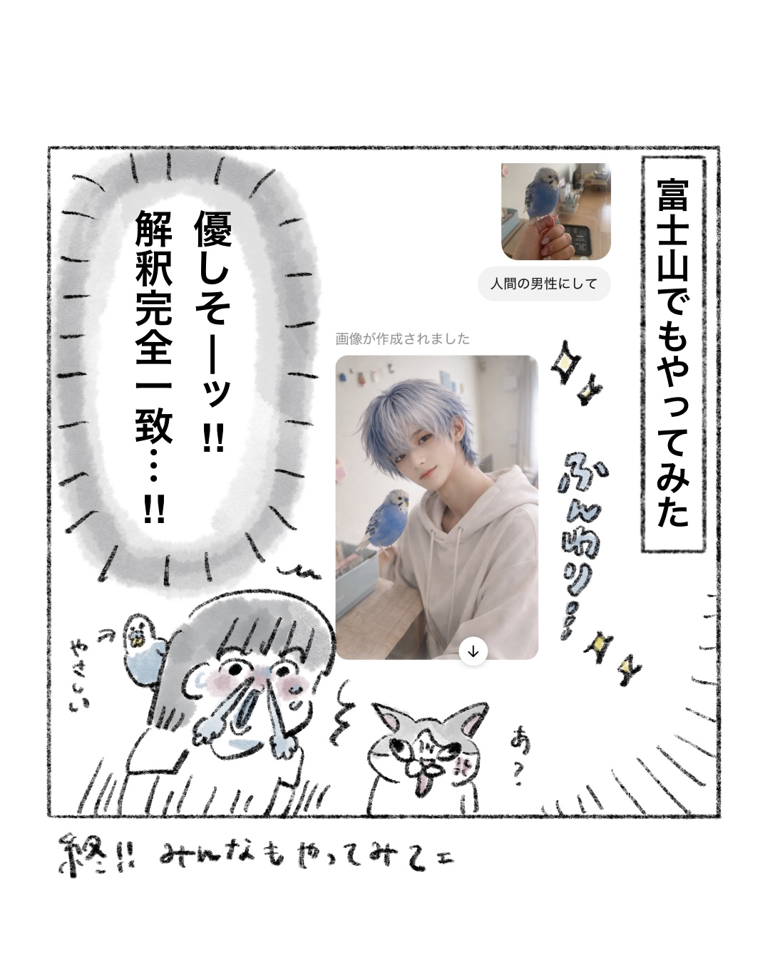 キキを人間にすると 2026.04.13 エッセイ漫画 広告 116 コメントはこちら 同じカテゴリの記事 先輩とオリーブの丘と私 私が1番キキに懐かれているのだ あの、力が抜けてく感じが苦手なんだよな 時々稀に見る顔の猫 歯を磨きすぎてる 野良猫紹介 深夜の実家猫 ミスドの食べ放題は行けない 新発見、猫のかわいいとこ 研なお子似 甘いものよこせ 髪の毛が無かったらもうボロボロ 顔でか猫 キキを人間にすると 最近仲がいいです 歯医者さんなりの気遣い② 歯医者さんなりの気遣い 水切りヨーグルトはいいぞ 猫のシッコ、つよし アニマルインスタグラマー📱😽 新しいポッチ⚫︎ 歯科とクチビル もう春ですよ〜ッ よくネット上で話題になる会話🍤 通い続けたい歯医者さん 今になって誤解を解きたい 富士山のプレゼント ねこ巻き🌀うまりたい 帰省したときのキキ キキの瞳は月 先輩のクッキー(レシピはインスタに載せます!) おしゃべりおじさん2 おしゃべりおじさん 落ちている猫? 軍曹襲来②虫が出ます 軍曹襲来⚠️虫注意 ボス野良猫再び 麻辣湯は体に良いと思ってた(思い込んでた) 我に返る猫 キキのファンサ お散歩事件 ふしぎ猫 お散歩事件 けんか仲裁ずぶ濡れおばけ 伊能忠敬界隈 バレリーナ志望 野良ボス猫のプレゼント 猫のギュイギュイという音 それでも食べる麻辣湯 からだの誇れるところ? 学ぶ、子猫キキ キキへ、本が出たよ 有意義な時間ってなによ まつパで最高の睡眠を..💤 ボス猫のおしっこ(やめて〜) 今ならウルセ〜!といえる キキと祖母 よもぎ蒸し体験③ よもぎ蒸し体験② よもぎ蒸し体験 夜中の猫 酸素は大事というコト!! 野良猫の中のボス猫 ゴキ🪳のトラウマが深すぎる 小麦と私🍝 母にバレたくない猫 猫飼いは猫じゃらしのプロになる 早食いになりたい 銭湯でぶっ倒れた♨️後 顎の猫 猫カフェに癒しを求めて… 麻辣湯カップ麺🍜 隠れる猫 背中にきびの治し方🏥 キキにキレられないやり方 麻辣湯が止まらない👿🍜 猫のおしゃべり🗣️🐈 麻辣湯初挑戦🍜 脇の注射と学ばない女2 脇の注射と学ばない女 母と爪切りと猫 ハイからのキレ 猫は気まぐれ(当たり前に) 髪の毛切りました 隠れる猫 誤解される飼い主(ツラい) 深く眠りたい(切実に) あったかい布、沼 何だその顔 寝ぼける猫 絶対に手は上 野良猫の楽園 脱毛のお姉さん2 脱毛のお姉さん 冬に埋もりがち猫 うさぎはモッモッと鳴きます それでも買ってしまう 理想のまつ毛 は難しい ラッコさんと漫画のネタ 冬の猫、たぬき それでも一緒に寝てみたい 錠剤怖い ご飯によって差が激しい猫 Gもハクビシンもイヤだ 猫まめ知識💡 猫の妖怪 猫又 誤字をキミは見つけられるか トイレする猫 見ちゃう 猫 耳隠し 猫の名前アレンジ 猫の折りたたまれた足 動物の本能 せっかく用意したのに 猫 中年というよりシニア猫 攻撃する猫 コタツの番人(猫) 猫とうさぎ 仲良くね〜 尻尾と出会う猫 暗闇忍者猫🥷 爪切る猫 冬の静電気猫 2 冬の醍醐味 猫 ご飯食べなくなる猫 ガガンボと猫 猫にまばたき 袋を猫と見間違えるのはあるある 落とす猫(あるある) 猫液体の作り方 液体猫 ヤバい奴と猫 年末の猫 風呂場の当たり屋 ショックを受ける猫 執念つよつよ猫 スマホ立てにされる猫 腕を出す 猫 お風呂場に猫 チャチャチャ 猫 抗えない 猫 AIで猫の擬人化を作る 毛布と猫 指しゃぶり猫 猫は気まぐれなのがいい 名前分かってる猫 冬の水セレブ猫 猫のご飯 結果 お弁当変化猫 先輩風吹かせ猫 寝ぼけている時寛容猫 カメムシと猫 目で叱ってくる猫 みんな好きだよね、猫の口 猫の毛を付けてゆくのだ 猫の毛玉ボール 冬と夏の猫 鬼ごっこの流れ 猫 (私的)猫の可愛い瞬間 水セレブ猫 猫のコメント欄 膝に乗るうさぎ 猫 よくくる質問 猫 いつもムスッとしてる猫 ふとした形の猫 あくび指猫 ファンサえぐい猫 シャーのニオイ猫 猫飼い主の発作 霊感があるのか猫 お尻トントン猫 猫缶は薄味のツナ缶 ニョー言わない猫 グルメな猫へ レーザーポインターはやめてね猫 お迎え初日の猫(かゆい)③ お迎え初日の猫(かゆい)② お迎え初日の猫(かゆい) 子猫でも変わらない猫 罠をかける猫 ごまかし猫 結局ウットリ猫 猫の皮膚の弛み 成長の猫 何がなんでも入る猫 臭いパトロール猫 不憫な姉と猫 部位別の反応、猫 猫 ブチギレ写真 猫の寿命 猫、オスメスの見分け方 優しくなった猫 母と猫 アンタのせいだよ、猫 ビックリしちゃう猫 しっぽ叩き猫 目を合わせない猫 遊び猫 逆ギレ猫 ほんとにサヨナラ、モフモフ 去勢猫 グッバイモフモフ 去勢猫 モフモフ 肉球猫 客人と猫 ダミ声猫 ご飯催促猫 こういうラッキーもある G嫌すぎ 猫用ケーキ🍰 パーソナルカラーと猫 筋肉質猫 🍣🍜りくさんの猫 吐く猫 おえおえ 猫とセミ 返事しすぎ猫 姉と猫(不憫) ダンボール好き猫 ウンチハイ猫 老いていく猫 夜中の猫 マタタビ猫 猫のゴロゴロ 慰め猫(あたたか) キキの心情 キキという名前 厚底サンダルマダム 猫ニキビ 激アツ美容院 猫あるある やらない 猫吸いチャレンジ 牛乳か雲丹か 街中膝