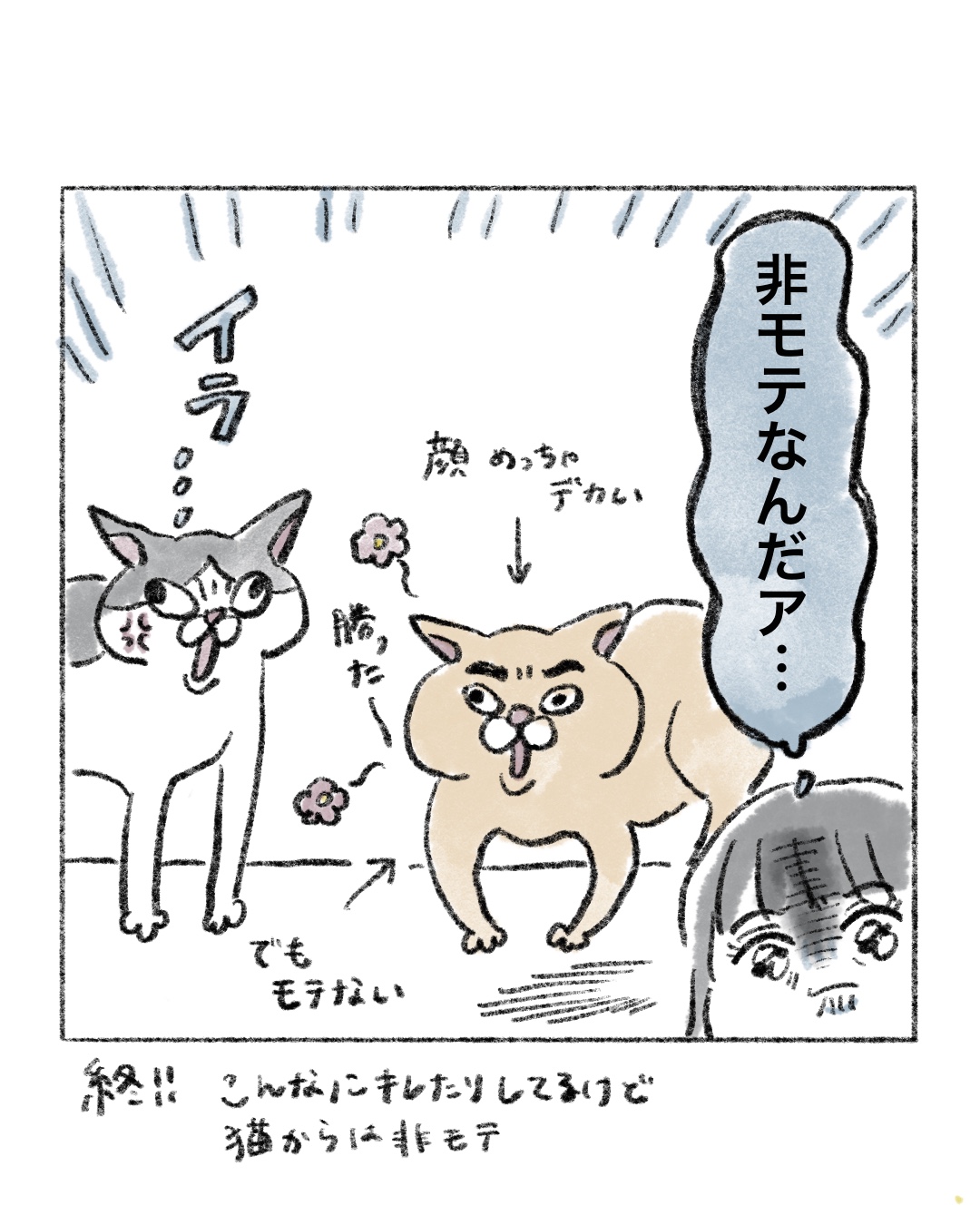 顔でか猫 2026.04.14 エッセイ漫画 #ねこ, #イラストエッセイ, #エッセイ, #エッセイマンガ 広告 126 コメントはこちら 同じカテゴリの記事 先輩とオリーブの丘と私 私が1番キキに懐かれているのだ あの、力が抜けてく感じが苦手なんだよな 時々稀に見る顔の猫 歯を磨きすぎてる 野良猫紹介 深夜の実家猫 ミスドの食べ放題は行けない 新発見、猫のかわいいとこ 研なお子似 甘いものよこせ 髪の毛が無かったらもうボロボロ 顔でか猫 キキを人間にすると 最近仲がいいです 歯医者さんなりの気遣い② 歯医者さんなりの気遣い 水切りヨーグルトはいいぞ 猫のシッコ、つよし アニマルインスタグラマー📱😽 新しいポッチ⚫︎ 歯科とクチビル もう春ですよ〜ッ よくネット上で話題になる会話🍤 通い続けたい歯医者さん 今になって誤解を解きたい 富士山のプレゼント ねこ巻き🌀うまりたい 帰省したときのキキ キキの瞳は月 先輩のクッキー(レシピはインスタに載せます!) おしゃべりおじさん2 おしゃべりおじさん 落ちている猫? 軍曹襲来②虫が出ます 軍曹襲来⚠️虫注意 ボス野良猫再び 麻辣湯は体に良いと思ってた(思い込んでた) 我に返る猫 キキのファンサ お散歩事件 ふしぎ猫 お散歩事件 けんか仲裁ずぶ濡れおばけ 伊能忠敬界隈 バレリーナ志望 野良ボス猫のプレゼント 猫のギュイギュイという音 それでも食べる麻辣湯 からだの誇れるところ? 学ぶ、子猫キキ キキへ、本が出たよ 有意義な時間ってなによ まつパで最高の睡眠を..💤 ボス猫のおしっこ(やめて〜) 今ならウルセ〜!といえる キキと祖母 よもぎ蒸し体験③ よもぎ蒸し体験② よもぎ蒸し体験 夜中の猫 酸素は大事というコト!! 野良猫の中のボス猫 ゴキ🪳のトラウマが深すぎる 小麦と私🍝 母にバレたくない猫 猫飼いは猫じゃらしのプロになる 早食いになりたい 銭湯でぶっ倒れた♨️後 顎の猫 猫カフェに癒しを求めて… 麻辣湯カップ麺🍜 隠れる猫 背中にきびの治し方🏥 キキにキレられないやり方 麻辣湯が止まらない👿🍜 猫のおしゃべり🗣️🐈 麻辣湯初挑戦🍜 脇の注射と学ばない女2 脇の注射と学ばない女 母と爪切りと猫 ハイからのキレ 猫は気まぐれ(当たり前に) 髪の毛切りました 隠れる猫 誤解される飼い主(ツラい) 深く眠りたい(切実に) あったかい布、沼 何だその顔 寝ぼける猫 絶対に手は上 野良猫の楽園 脱毛のお姉さん2 脱毛のお姉さん 冬に埋もりがち猫 うさぎはモッモッと鳴きます それでも買ってしまう 理想のまつ毛 は難しい ラッコさんと漫画のネタ 冬の猫、たぬき それでも一緒に寝てみたい 錠剤怖い ご飯によって差が激しい猫 Gもハクビシンもイヤだ 猫まめ知識💡 猫の妖怪 猫又 誤字をキミは見つけられるか トイレする猫 見ちゃう 猫 耳隠し 猫の名前アレンジ 猫の折りたたまれた足 動物の本能 せっかく用意したのに 猫 中年というよりシニア猫 攻撃する猫 コタツの番人(猫) 猫とうさぎ 仲良くね〜 尻尾と出会う猫 暗闇忍者猫🥷 爪切る猫 冬の静電気猫 2 冬の醍醐味 猫 ご飯食べなくなる猫 ガガンボと猫 猫にまばたき 袋を猫と見間違えるのはあるある 落とす猫(あるある) 猫液体の作り方 液体猫 ヤバい奴と猫 年末の猫 風呂場の当たり屋 ショックを受ける猫 執念つよつよ猫 スマホ立てにされる猫 腕を出す 猫 お風呂場に猫 チャチャチャ 猫 抗えない 猫 AIで猫の擬人化を作る 毛布と猫 指しゃぶり猫 猫は気まぐれなのがいい 名前分かってる猫 冬の水セレブ猫 猫のご飯 結果 お弁当変化猫 先輩風吹かせ猫 寝ぼけている時寛容猫 カメムシと猫 目で叱ってくる猫 みんな好きだよね、猫の口 猫の毛を付けてゆくのだ 猫の毛玉ボール 冬と夏の猫 鬼ごっこの流れ 猫 (私的)猫の可愛い瞬間 水セレブ猫 猫のコメント欄 膝に乗るうさぎ 猫 よくくる質問 猫 いつもムスッとしてる猫 ふとした形の猫 あくび指猫 ファンサえぐい猫 シャーのニオイ猫 猫飼い主の発作 霊感があるのか猫 お尻トントン猫 猫缶は薄味のツナ缶 ニョー言わない猫 グルメな猫へ レーザーポインターはやめてね猫 お迎え初日の猫(かゆい)③ お迎え初日の猫(かゆい)② お迎え初日の猫(かゆい) 子猫でも変わらない猫 罠をかける猫 ごまかし猫 結局ウットリ猫 猫の皮膚の弛み 成長の猫 何がなんでも入る猫 臭いパトロール猫 不憫な姉と猫 部位別の反応、猫 猫 ブチギレ写真 猫の寿命 猫、オスメスの見分け方 優しくなった猫 母と猫 アンタのせいだよ、猫 ビックリしちゃう猫 しっぽ叩き猫 目を合わせない猫 遊び猫 逆ギレ猫 ほんとにサヨナラ、モフモフ 去勢猫 グッバイモフモフ 去勢猫 モフモフ 肉球猫 客人と猫 ダミ声猫 ご飯催促猫 こういうラッキーもある G嫌すぎ 猫用ケーキ🍰 パーソナルカラーと猫 筋肉質猫 🍣🍜りくさんの猫 吐く猫 おえおえ 猫とセミ 返事しすぎ猫 姉と猫(不憫) ダンボール好き猫 ウンチハイ猫 老いていく猫 夜中の猫 マタタビ猫 猫のゴロゴロ 慰め猫(あたたか) キキの心情 キキという名前 厚底サンダルマダム 猫ニキビ 激アツ美容院 猫あるある やら
