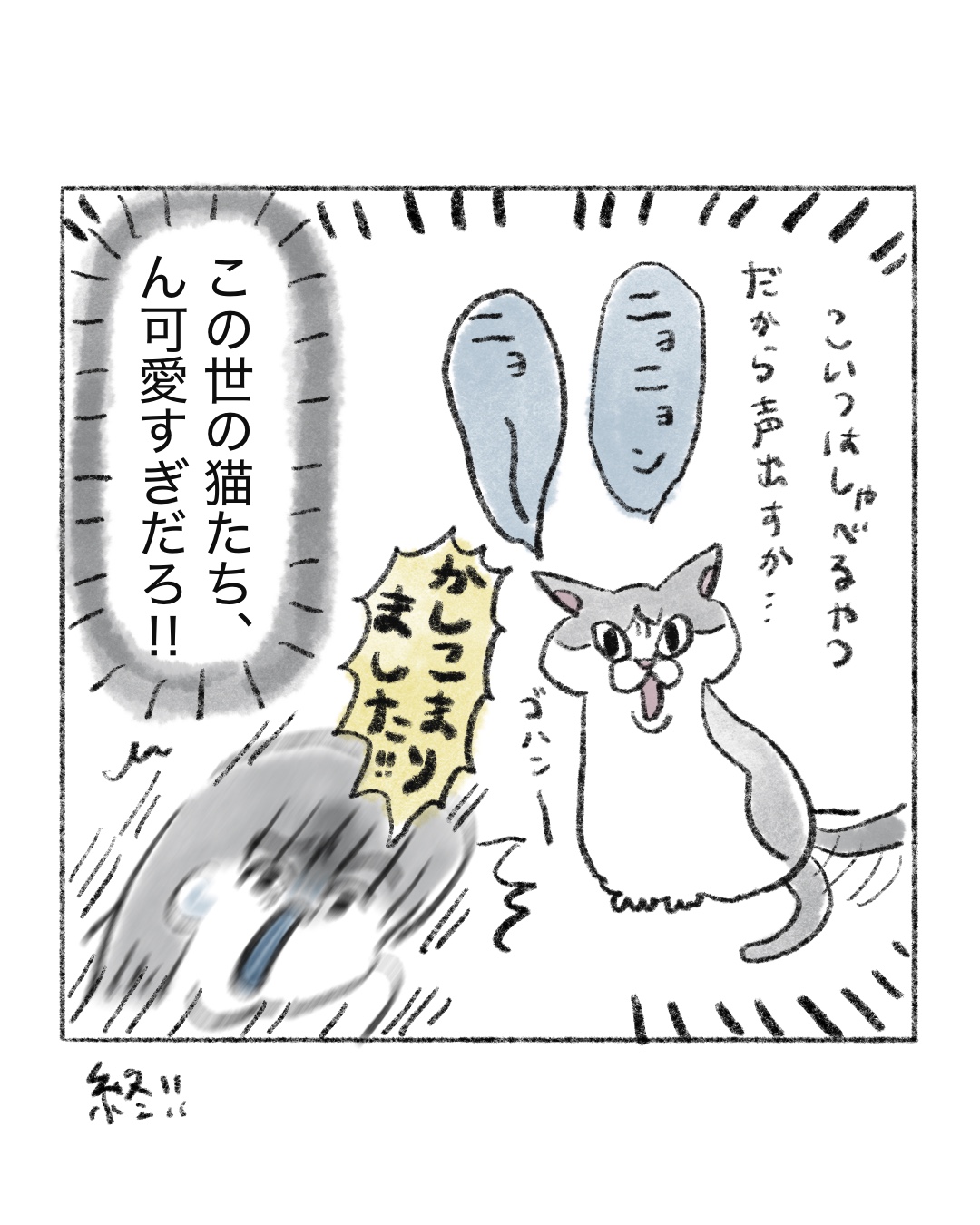 新発見、猫のかわいいとこ 2026.04.18 エッセイ漫画 広告 157 コメントはこちら 同じカテゴリの記事 先輩とオリーブの丘と私 私が1番キキに懐かれているのだ あの、力が抜けてく感じが苦手なんだよな 時々稀に見る顔の猫 歯を磨きすぎてる 野良猫紹介 深夜の実家猫 ミスドの食べ放題は行けない 新発見、猫のかわいいとこ 研なお子似 甘いものよこせ 髪の毛が無かったらもうボロボロ 顔でか猫 キキを人間にすると 最近仲がいいです 歯医者さんなりの気遣い② 歯医者さんなりの気遣い 水切りヨーグルトはいいぞ 猫のシッコ、つよし アニマルインスタグラマー📱😽 新しいポッチ⚫︎ 歯科とクチビル もう春ですよ〜ッ よくネット上で話題になる会話🍤 通い続けたい歯医者さん 今になって誤解を解きたい 富士山のプレゼント ねこ巻き🌀うまりたい 帰省したときのキキ キキの瞳は月 先輩のクッキー(レシピはインスタに載せます!) おしゃべりおじさん2 おしゃべりおじさん 落ちている猫? 軍曹襲来②虫が出ます 軍曹襲来⚠️虫注意 ボス野良猫再び 麻辣湯は体に良いと思ってた(思い込んでた) 我に返る猫 キキのファンサ お散歩事件 ふしぎ猫 お散歩事件 けんか仲裁ずぶ濡れおばけ 伊能忠敬界隈 バレリーナ志望 野良ボス猫のプレゼント 猫のギュイギュイという音 それでも食べる麻辣湯 からだの誇れるところ? 学ぶ、子猫キキ キキへ、本が出たよ 有意義な時間ってなによ まつパで最高の睡眠を..💤 ボス猫のおしっこ(やめて〜) 今ならウルセ〜!といえる キキと祖母 よもぎ蒸し体験③ よもぎ蒸し体験② よもぎ蒸し体験 夜中の猫 酸素は大事というコト!! 野良猫の中のボス猫 ゴキ🪳のトラウマが深すぎる 小麦と私🍝 母にバレたくない猫 猫飼いは猫じゃらしのプロになる 早食いになりたい 銭湯でぶっ倒れた♨️後 顎の猫 猫カフェに癒しを求めて… 麻辣湯カップ麺🍜 隠れる猫 背中にきびの治し方🏥 キキにキレられないやり方 麻辣湯が止まらない👿🍜 猫のおしゃべり🗣️🐈 麻辣湯初挑戦🍜 脇の注射と学ばない女2 脇の注射と学ばない女 母と爪切りと猫 ハイからのキレ 猫は気まぐれ(当たり前に) 髪の毛切りました 隠れる猫 誤解される飼い主(ツラい) 深く眠りたい(切実に) あったかい布、沼 何だその顔 寝ぼける猫 絶対に手は上 野良猫の楽園 脱毛のお姉さん2 脱毛のお姉さん 冬に埋もりがち猫 うさぎはモッモッと鳴きます それでも買ってしまう 理想のまつ毛 は難しい ラッコさんと漫画のネタ 冬の猫、たぬき それでも一緒に寝てみたい 錠剤怖い ご飯によって差が激しい猫 Gもハクビシンもイヤだ 猫まめ知識💡 猫の妖怪 猫又 誤字をキミは見つけられるか トイレする猫 見ちゃう 猫 耳隠し 猫の名前アレンジ 猫の折りたたまれた足 動物の本能 せっかく用意したのに 猫 中年というよりシニア猫 攻撃する猫 コタツの番人(猫) 猫とうさぎ 仲良くね〜 尻尾と出会う猫 暗闇忍者猫🥷 爪切る猫 冬の静電気猫 2 冬の醍醐味 猫 ご飯食べなくなる猫 ガガンボと猫 猫にまばたき 袋を猫と見間違えるのはあるある 落とす猫(あるある) 猫液体の作り方 液体猫 ヤバい奴と猫 年末の猫 風呂場の当たり屋 ショックを受ける猫 執念つよつよ猫 スマホ立てにされる猫 腕を出す 猫 お風呂場に猫 チャチャチャ 猫 抗えない 猫 AIで猫の擬人化を作る 毛布と猫 指しゃぶり猫 猫は気まぐれなのがいい 名前分かってる猫 冬の水セレブ猫 猫のご飯 結果 お弁当変化猫 先輩風吹かせ猫 寝ぼけている時寛容猫 カメムシと猫 目で叱ってくる猫 みんな好きだよね、猫の口 猫の毛を付けてゆくのだ 猫の毛玉ボール 冬と夏の猫 鬼ごっこの流れ 猫 (私的)猫の可愛い瞬間 水セレブ猫 猫のコメント欄 膝に乗るうさぎ 猫 よくくる質問 猫 いつもムスッとしてる猫 ふとした形の猫 あくび指猫 ファンサえぐい猫 シャーのニオイ猫 猫飼い主の発作 霊感があるのか猫 お尻トントン猫 猫缶は薄味のツナ缶 ニョー言わない猫 グルメな猫へ レーザーポインターはやめてね猫 お迎え初日の猫(かゆい)③ お迎え初日の猫(かゆい)② お迎え初日の猫(かゆい) 子猫でも変わらない猫 罠をかける猫 ごまかし猫 結局ウットリ猫 猫の皮膚の弛み 成長の猫 何がなんでも入る猫 臭いパトロール猫 不憫な姉と猫 部位別の反応、猫 猫 ブチギレ写真 猫の寿命 猫、オスメスの見分け方 優しくなった猫 母と猫 アンタのせいだよ、猫 ビックリしちゃう猫 しっぽ叩き猫 目を合わせない猫 遊び猫 逆ギレ猫 ほんとにサヨナラ、モフモフ 去勢猫 グッバイモフモフ 去勢猫 モフモフ 肉球猫 客人と猫 ダミ声猫 ご飯催促猫 こういうラッキーもある G嫌すぎ 猫用ケーキ🍰 パーソナルカラーと猫 筋肉質猫 🍣🍜りくさんの猫 吐く猫 おえおえ 猫とセミ 返事しすぎ猫 姉と猫(不憫) ダンボール好き猫 ウンチハイ猫 老いていく猫 夜中の猫 マタタビ猫 猫のゴロゴロ 慰め猫(あたたか) キキの心情 キキという名前 厚底サンダルマダム 猫ニキビ 激アツ美容院 猫あるある やらない 猫吸いチャレンジ 牛乳か雲丹か 