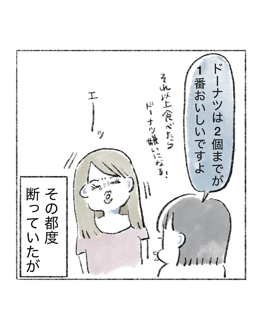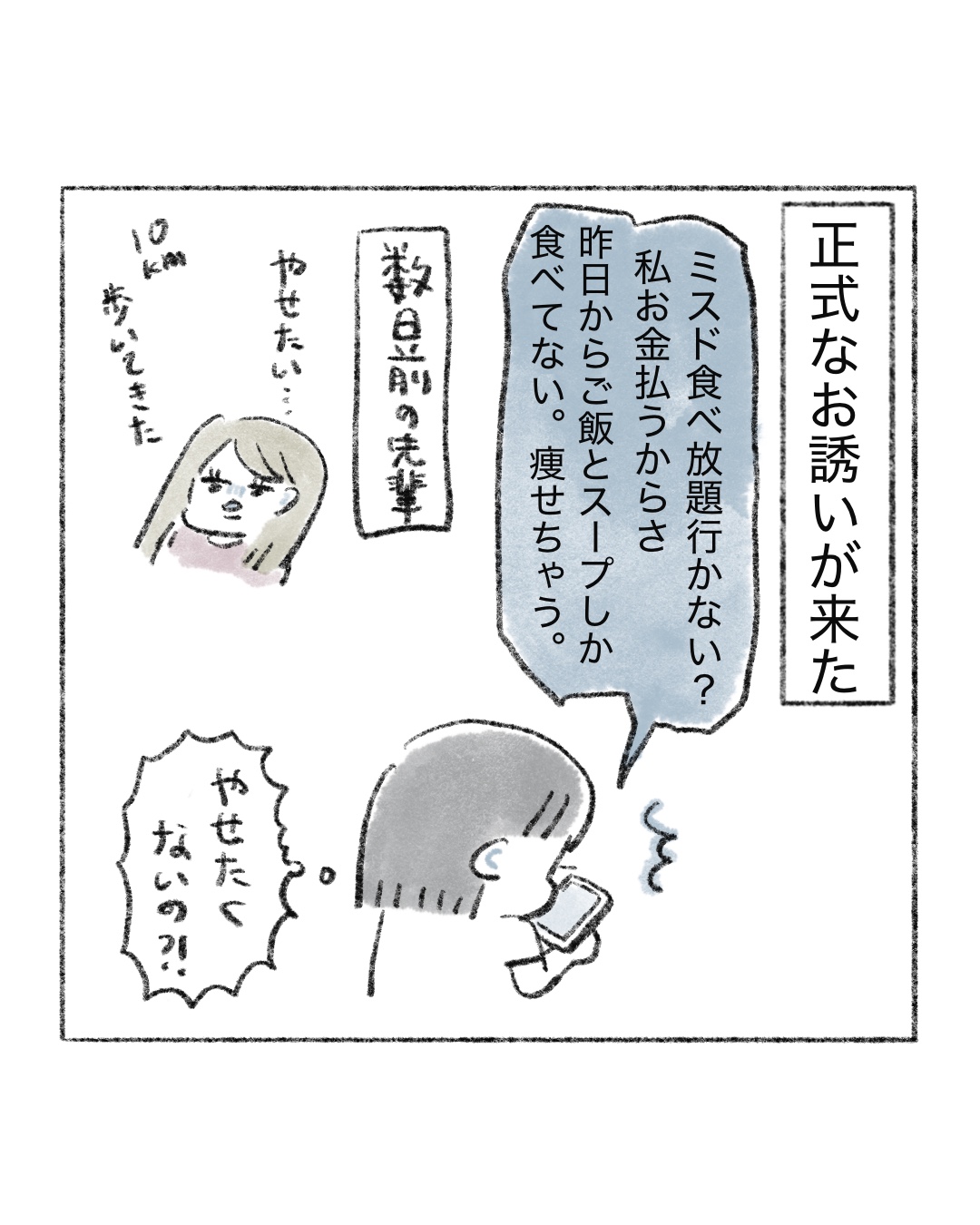 ミスドの食べ放題は行けない 2026.04.20 エッセイ漫画 #イラストエッセイ, #エッセイマンガ 広告 123 コメントはこちら 同じカテゴリの記事 先輩とオリーブの丘と私 私が1番キキに懐かれているのだ あの、力が抜けてく感じが苦手なんだよな 時々稀に見る顔の猫 歯を磨きすぎてる 野良猫紹介 深夜の実家猫 ミスドの食べ放題は行けない 新発見、猫のかわいいとこ 研なお子似 甘いものよこせ 髪の毛が無かったらもうボロボロ 顔でか猫 キキを人間にすると 最近仲がいいです 歯医者さんなりの気遣い② 歯医者さんなりの気遣い 水切りヨーグルトはいいぞ 猫のシッコ、つよし アニマルインスタグラマー📱😽 新しいポッチ⚫︎ 歯科とクチビル もう春ですよ〜ッ よくネット上で話題になる会話🍤 通い続けたい歯医者さん 今になって誤解を解きたい 富士山のプレゼント ねこ巻き🌀うまりたい 帰省したときのキキ キキの瞳は月 先輩のクッキー(レシピはインスタに載せます!) おしゃべりおじさん2 おしゃべりおじさん 落ちている猫? 軍曹襲来②虫が出ます 軍曹襲来⚠️虫注意 ボス野良猫再び 麻辣湯は体に良いと思ってた(思い込んでた) 我に返る猫 キキのファンサ お散歩事件 ふしぎ猫 お散歩事件 けんか仲裁ずぶ濡れおばけ 伊能忠敬界隈 バレリーナ志望 野良ボス猫のプレゼント 猫のギュイギュイという音 それでも食べる麻辣湯 からだの誇れるところ? 学ぶ、子猫キキ キキへ、本が出たよ 有意義な時間ってなによ まつパで最高の睡眠を..💤 ボス猫のおしっこ(やめて〜) 今ならウルセ〜!といえる キキと祖母 よもぎ蒸し体験③ よもぎ蒸し体験② よもぎ蒸し体験 夜中の猫 酸素は大事というコト!! 野良猫の中のボス猫 ゴキ🪳のトラウマが深すぎる 小麦と私🍝 母にバレたくない猫 猫飼いは猫じゃらしのプロになる 早食いになりたい 銭湯でぶっ倒れた♨️後 顎の猫 猫カフェに癒しを求めて… 麻辣湯カップ麺🍜 隠れる猫 背中にきびの治し方🏥 キキにキレられないやり方 麻辣湯が止まらない👿🍜 猫のおしゃべり🗣️🐈 麻辣湯初挑戦🍜 脇の注射と学ばない女2 脇の注射と学ばない女 母と爪切りと猫 ハイからのキレ 猫は気まぐれ(当たり前に) 髪の毛切りました 隠れる猫 誤解される飼い主(ツラい) 深く眠りたい(切実に) あったかい布、沼 何だその顔 寝ぼける猫 絶対に手は上 野良猫の楽園 脱毛のお姉さん2 脱毛のお姉さん 冬に埋もりがち猫 うさぎはモッモッと鳴きます それでも買ってしまう 理想のまつ毛 は難しい ラッコさんと漫画のネタ 冬の猫、たぬき それでも一緒に寝てみたい 錠剤怖い ご飯によって差が激しい猫 Gもハクビシンもイヤだ 猫まめ知識💡 猫の妖怪 猫又 誤字をキミは見つけられるか トイレする猫 見ちゃう 猫 耳隠し 猫の名前アレンジ 猫の折りたたまれた足 動物の本能 せっかく用意したのに 猫 中年というよりシニア猫 攻撃する猫 コタツの番人(猫) 猫とうさぎ 仲良くね〜 尻尾と出会う猫 暗闇忍者猫🥷 爪切る猫 冬の静電気猫 2 冬の醍醐味 猫 ご飯食べなくなる猫 ガガンボと猫 猫にまばたき 袋を猫と見間違えるのはあるある 落とす猫(あるある) 猫液体の作り方 液体猫 ヤバい奴と猫 年末の猫 風呂場の当たり屋 ショックを受ける猫 執念つよつよ猫 スマホ立てにされる猫 腕を出す 猫 お風呂場に猫 チャチャチャ 猫 抗えない 猫 AIで猫の擬人化を作る 毛布と猫 指しゃぶり猫 猫は気まぐれなのがいい 名前分かってる猫 冬の水セレブ猫 猫のご飯 結果 お弁当変化猫 先輩風吹かせ猫 寝ぼけている時寛容猫 カメムシと猫 目で叱ってくる猫 みんな好きだよね、猫の口 猫の毛を付けてゆくのだ 猫の毛玉ボール 冬と夏の猫 鬼ごっこの流れ 猫 (私的)猫の可愛い瞬間 水セレブ猫 猫のコメント欄 膝に乗るうさぎ 猫 よくくる質問 猫 いつもムスッとしてる猫 ふとした形の猫 あくび指猫 ファンサえぐい猫 シャーのニオイ猫 猫飼い主の発作 霊感があるのか猫 お尻トントン猫 猫缶は薄味のツナ缶 ニョー言わない猫 グルメな猫へ レーザーポインターはやめてね猫 お迎え初日の猫(かゆい)③ お迎え初日の猫(かゆい)② お迎え初日の猫(かゆい) 子猫でも変わらない猫 罠をかける猫 ごまかし猫 結局ウットリ猫 猫の皮膚の弛み 成長の猫 何がなんでも入る猫 臭いパトロール猫 不憫な姉と猫 部位別の反応、猫 猫 ブチギレ写真 猫の寿命 猫、オスメスの見分け方 優しくなった猫 母と猫 アンタのせいだよ、猫 ビックリしちゃう猫 しっぽ叩き猫 目を合わせない猫 遊び猫 逆ギレ猫 ほんとにサヨナラ、モフモフ 去勢猫 グッバイモフモフ 去勢猫 モフモフ 肉球猫 客人と猫 ダミ声猫 ご飯催促猫 こういうラッキーもある G嫌すぎ 猫用ケーキ🍰 パーソナルカラーと猫 筋肉質猫 🍣🍜りくさんの猫 吐く猫 おえおえ 猫とセミ 返事しすぎ猫 姉と猫(不憫) ダンボール好き猫 ウンチハイ猫 老いていく猫 夜中の猫 マタタビ猫 猫のゴロゴロ 慰め猫(あたたか) キキの心情 キキという名前 厚底サンダルマダム 猫ニキビ 激アツ美容院 猫あるある や