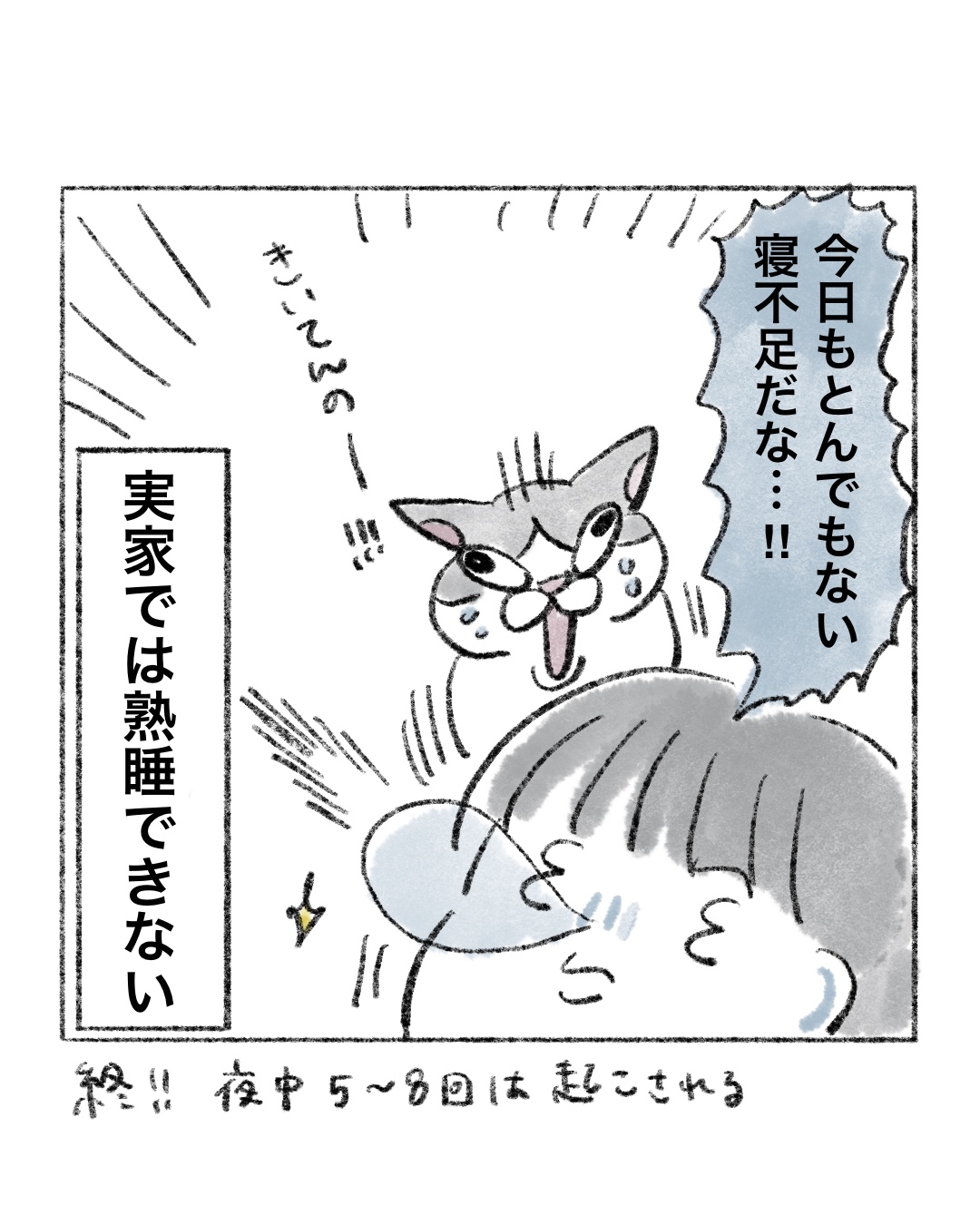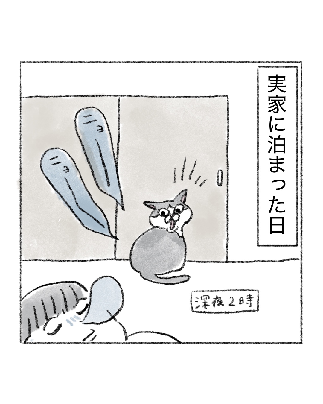 深夜の実家猫 2026.04.21 エッセイ漫画 #ねこ, #イラストエッセイ, #エッセイ, #エッセイマンガ 広告 143 コメントはこちら 同じカテゴリの記事 先輩とオリーブの丘と私 私が1番キキに懐かれているのだ あの、力が抜けてく感じが苦手なんだよな 時々稀に見る顔の猫 歯を磨きすぎてる 野良猫紹介 深夜の実家猫 ミスドの食べ放題は行けない 新発見、猫のかわいいとこ 研なお子似 甘いものよこせ 髪の毛が無かったらもうボロボロ 顔でか猫 キキを人間にすると 最近仲がいいです 歯医者さんなりの気遣い② 歯医者さんなりの気遣い 水切りヨーグルトはいいぞ 猫のシッコ、つよし アニマルインスタグラマー📱😽 新しいポッチ⚫︎ 歯科とクチビル もう春ですよ〜ッ よくネット上で話題になる会話🍤 通い続けたい歯医者さん 今になって誤解を解きたい 富士山のプレゼント ねこ巻き🌀うまりたい 帰省したときのキキ キキの瞳は月 先輩のクッキー(レシピはインスタに載せます!) おしゃべりおじさん2 おしゃべりおじさん 落ちている猫? 軍曹襲来②虫が出ます 軍曹襲来⚠️虫注意 ボス野良猫再び 麻辣湯は体に良いと思ってた(思い込んでた) 我に返る猫 キキのファンサ お散歩事件 ふしぎ猫 お散歩事件 けんか仲裁ずぶ濡れおばけ 伊能忠敬界隈 バレリーナ志望 野良ボス猫のプレゼント 猫のギュイギュイという音 それでも食べる麻辣湯 からだの誇れるところ? 学ぶ、子猫キキ キキへ、本が出たよ 有意義な時間ってなによ まつパで最高の睡眠を..💤 ボス猫のおしっこ(やめて〜) 今ならウルセ〜!といえる キキと祖母 よもぎ蒸し体験③ よもぎ蒸し体験② よもぎ蒸し体験 夜中の猫 酸素は大事というコト!! 野良猫の中のボス猫 ゴキ🪳のトラウマが深すぎる 小麦と私🍝 母にバレたくない猫 猫飼いは猫じゃらしのプロになる 早食いになりたい 銭湯でぶっ倒れた♨️後 顎の猫 猫カフェに癒しを求めて… 麻辣湯カップ麺🍜 隠れる猫 背中にきびの治し方🏥 キキにキレられないやり方 麻辣湯が止まらない👿🍜 猫のおしゃべり🗣️🐈 麻辣湯初挑戦🍜 脇の注射と学ばない女2 脇の注射と学ばない女 母と爪切りと猫 ハイからのキレ 猫は気まぐれ(当たり前に) 髪の毛切りました 隠れる猫 誤解される飼い主(ツラい) 深く眠りたい(切実に) あったかい布、沼 何だその顔 寝ぼける猫 絶対に手は上 野良猫の楽園 脱毛のお姉さん2 脱毛のお姉さん 冬に埋もりがち猫 うさぎはモッモッと鳴きます それでも買ってしまう 理想のまつ毛 は難しい ラッコさんと漫画のネタ 冬の猫、たぬき それでも一緒に寝てみたい 錠剤怖い ご飯によって差が激しい猫 Gもハクビシンもイヤだ 猫まめ知識💡 猫の妖怪 猫又 誤字をキミは見つけられるか トイレする猫 見ちゃう 猫 耳隠し 猫の名前アレンジ 猫の折りたたまれた足 動物の本能 せっかく用意したのに 猫 中年というよりシニア猫 攻撃する猫 コタツの番人(猫) 猫とうさぎ 仲良くね〜 尻尾と出会う猫 暗闇忍者猫🥷 爪切る猫 冬の静電気猫 2 冬の醍醐味 猫 ご飯食べなくなる猫 ガガンボと猫 猫にまばたき 袋を猫と見間違えるのはあるある 落とす猫(あるある) 猫液体の作り方 液体猫 ヤバい奴と猫 年末の猫 風呂場の当たり屋 ショックを受ける猫 執念つよつよ猫 スマホ立てにされる猫 腕を出す 猫 お風呂場に猫 チャチャチャ 猫 抗えない 猫 AIで猫の擬人化を作る 毛布と猫 指しゃぶり猫 猫は気まぐれなのがいい 名前分かってる猫 冬の水セレブ猫 猫のご飯 結果 お弁当変化猫 先輩風吹かせ猫 寝ぼけている時寛容猫 カメムシと猫 目で叱ってくる猫 みんな好きだよね、猫の口 猫の毛を付けてゆくのだ 猫の毛玉ボール 冬と夏の猫 鬼ごっこの流れ 猫 (私的)猫の可愛い瞬間 水セレブ猫 猫のコメント欄 膝に乗るうさぎ 猫 よくくる質問 猫 いつもムスッとしてる猫 ふとした形の猫 あくび指猫 ファンサえぐい猫 シャーのニオイ猫 猫飼い主の発作 霊感があるのか猫 お尻トントン猫 猫缶は薄味のツナ缶 ニョー言わない猫 グルメな猫へ レーザーポインターはやめてね猫 お迎え初日の猫(かゆい)③ お迎え初日の猫(かゆい)② お迎え初日の猫(かゆい) 子猫でも変わらない猫 罠をかける猫 ごまかし猫 結局ウットリ猫 猫の皮膚の弛み 成長の猫 何がなんでも入る猫 臭いパトロール猫 不憫な姉と猫 部位別の反応、猫 猫 ブチギレ写真 猫の寿命 猫、オスメスの見分け方 優しくなった猫 母と猫 アンタのせいだよ、猫 ビックリしちゃう猫 しっぽ叩き猫 目を合わせない猫 遊び猫 逆ギレ猫 ほんとにサヨナラ、モフモフ 去勢猫 グッバイモフモフ 去勢猫 モフモフ 肉球猫 客人と猫 ダミ声猫 ご飯催促猫 こういうラッキーもある G嫌すぎ 猫用ケーキ🍰 パーソナルカラーと猫 筋肉質猫 🍣🍜りくさんの猫 吐く猫 おえおえ 猫とセミ 返事しすぎ猫 姉と猫(不憫) ダンボール好き猫 ウンチハイ猫 老いていく猫 夜中の猫 マタタビ猫 猫のゴロゴロ 慰め猫(あたたか) キキの心情 キキという名前 厚底サンダルマダム 猫ニキビ 激アツ美容院 猫あるある 